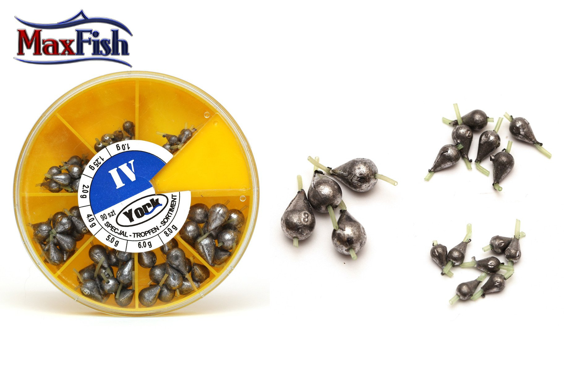 Opakowanie zawiera 7 rozmiarów ciężarków przelotowych z rurką igielitową.