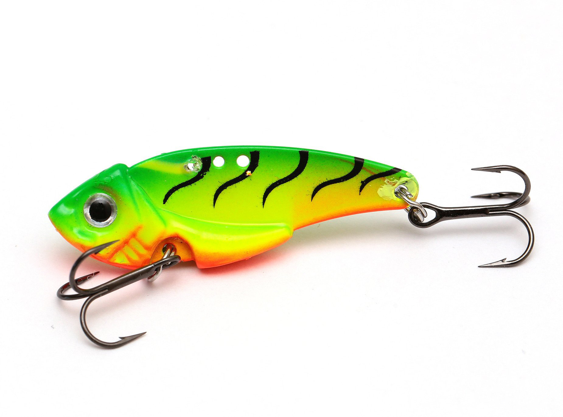 Otwory do zapięcia agrafki w górnej części przynęty pozwalają na indywidualne dopasowanie pracy cykady w zależności od zbiornika i aktywności ryb.