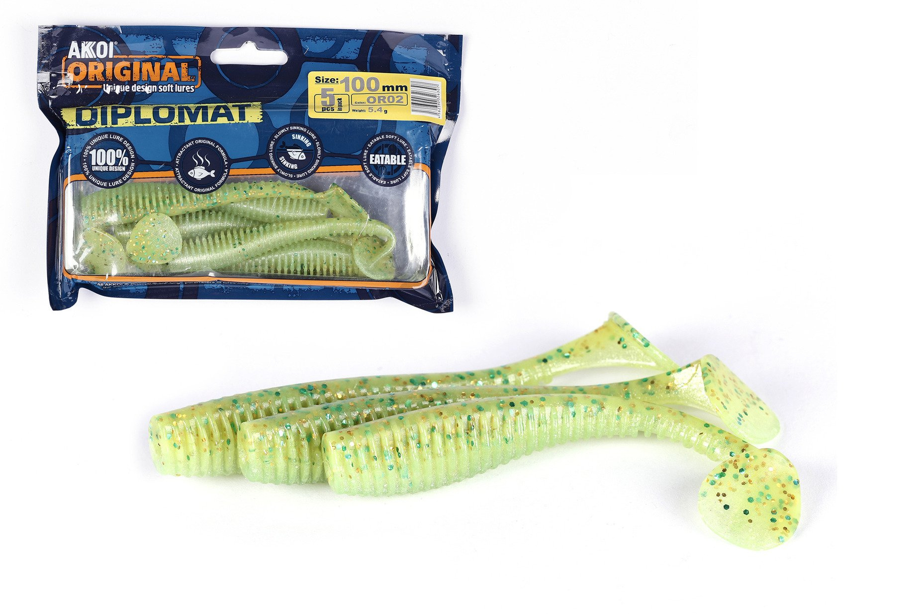 Wszystkie przynęty z serii Diplomat są szczególnie sprężyste, doskonale trzymają się haczyka i są dość elastyczne, należy osobno zwracać uwagę na stopień wyporu - cały silikon z tej serii powoli tonie.