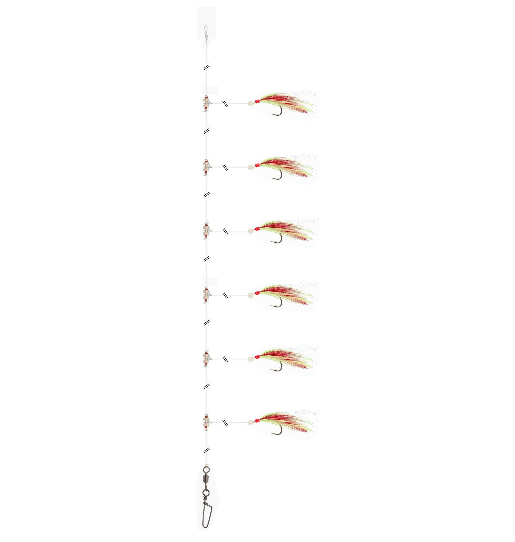 - Klasyczny przypon makrelowy z piórkami.