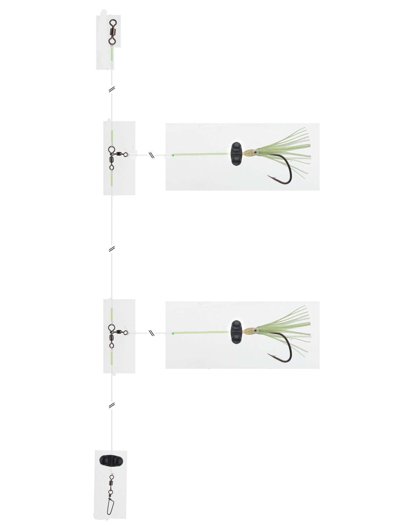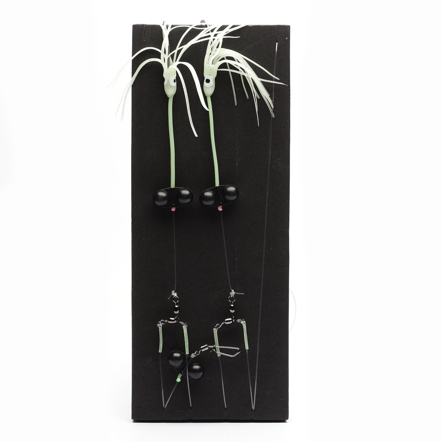 Obrotowe koraliki, osłona węzłów oraz rurki przy ośmiorniczkach sprawiają, że przypon nie plącze się tak łatwo w trakcie opuszczania na duże głębokości i w silnym nurcie.