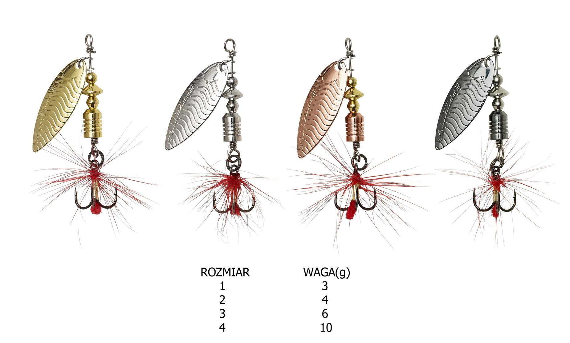 Błystki te zostały wyposażone w kotwiczkę z UV-aktywnym chwostem wykonanym z piór.