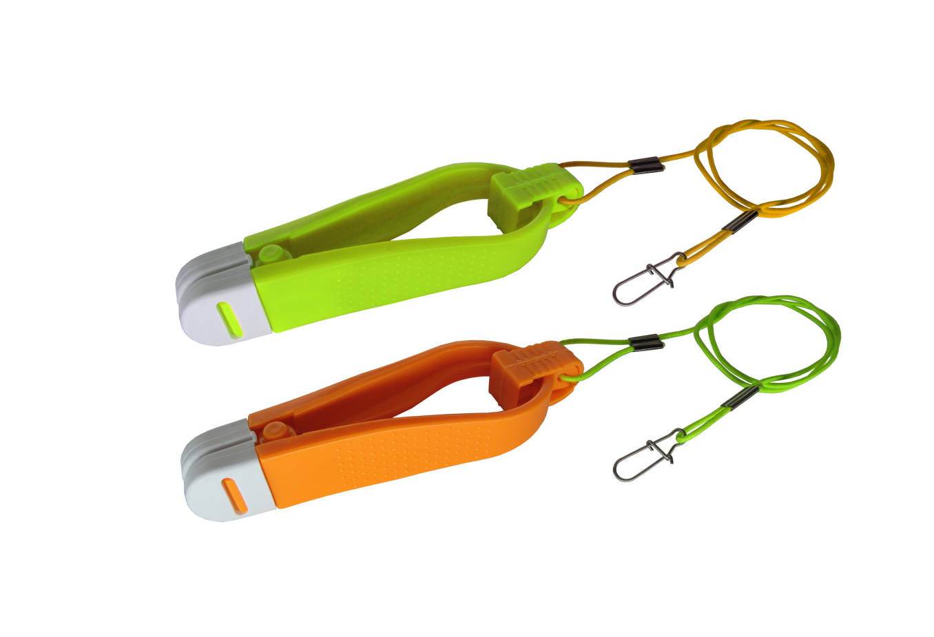Klipsy trollingowe w jaskrawych kolorach z gumowymi noskami w kształcie zapewniającym łatwe operowanie.