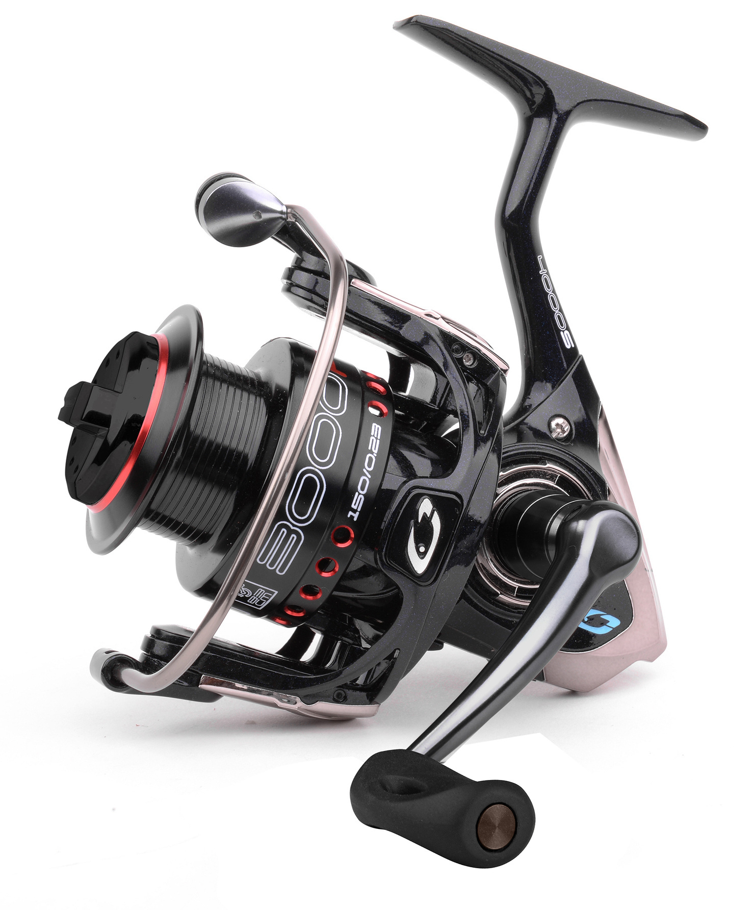 Kołowrotki wyposażone są w płytką szpulę (150 m / 0,20 mm) i częściowo płytką szpulę zapasową (150 m / 0,23 mm), obie wykonane z aluminium i zaopatrzone w dobrze wykończony klips w kształcie tarczy.