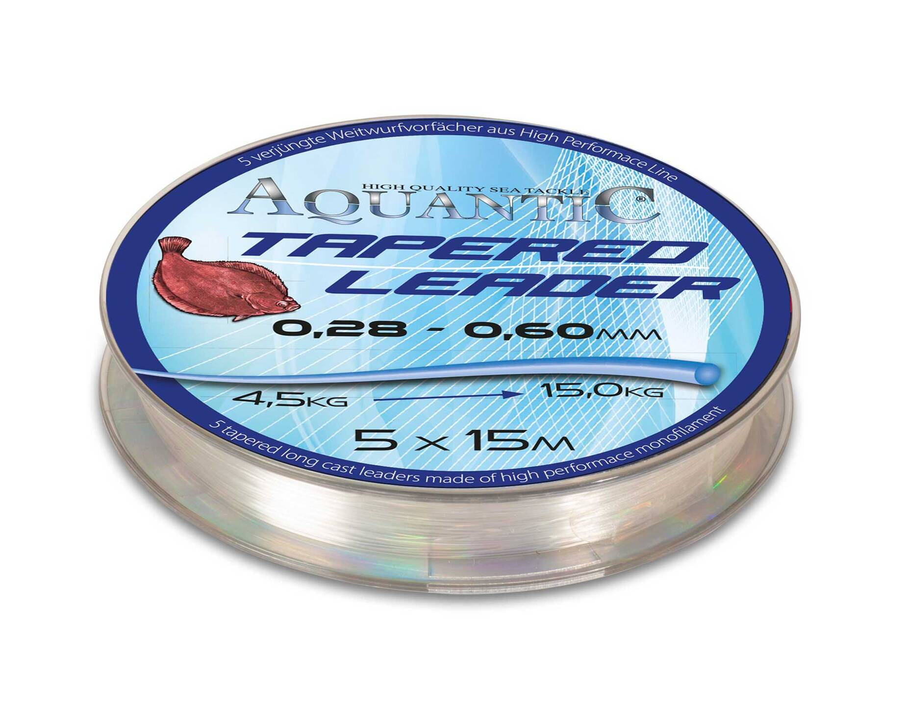 Materiał przyponowy Tapered leader (przezroczysty), 5 przyponów na 15 m/szpulę.