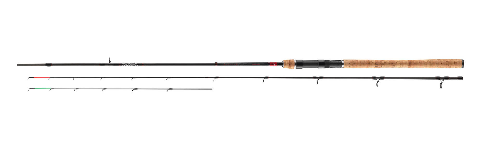 Feeder Ninja X Stalker Feeder jest dostarczany z dwiema drgającymi szczytówkami z włókna węglowego.