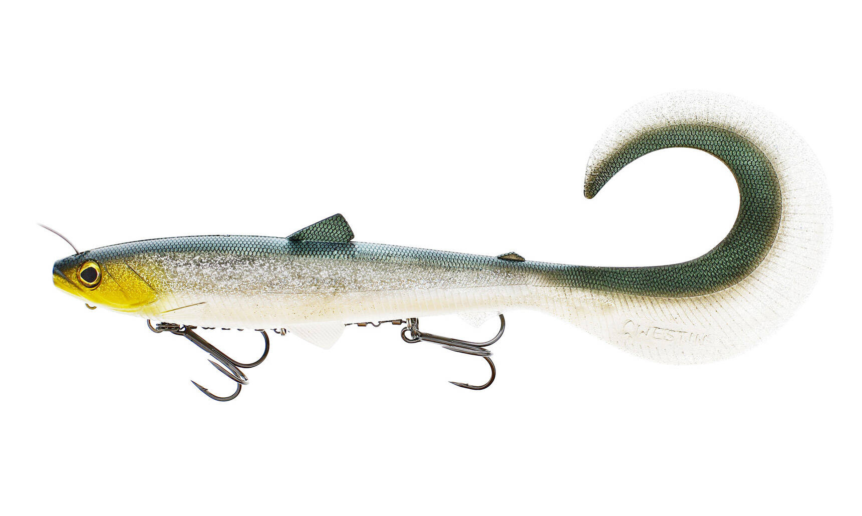 Dzięki wyjątkowemu kształtowi brzucha oraz dużemu zakręconemu ogonowi możesz łowić tą dużą przynętą przy dowolnej prędkości.