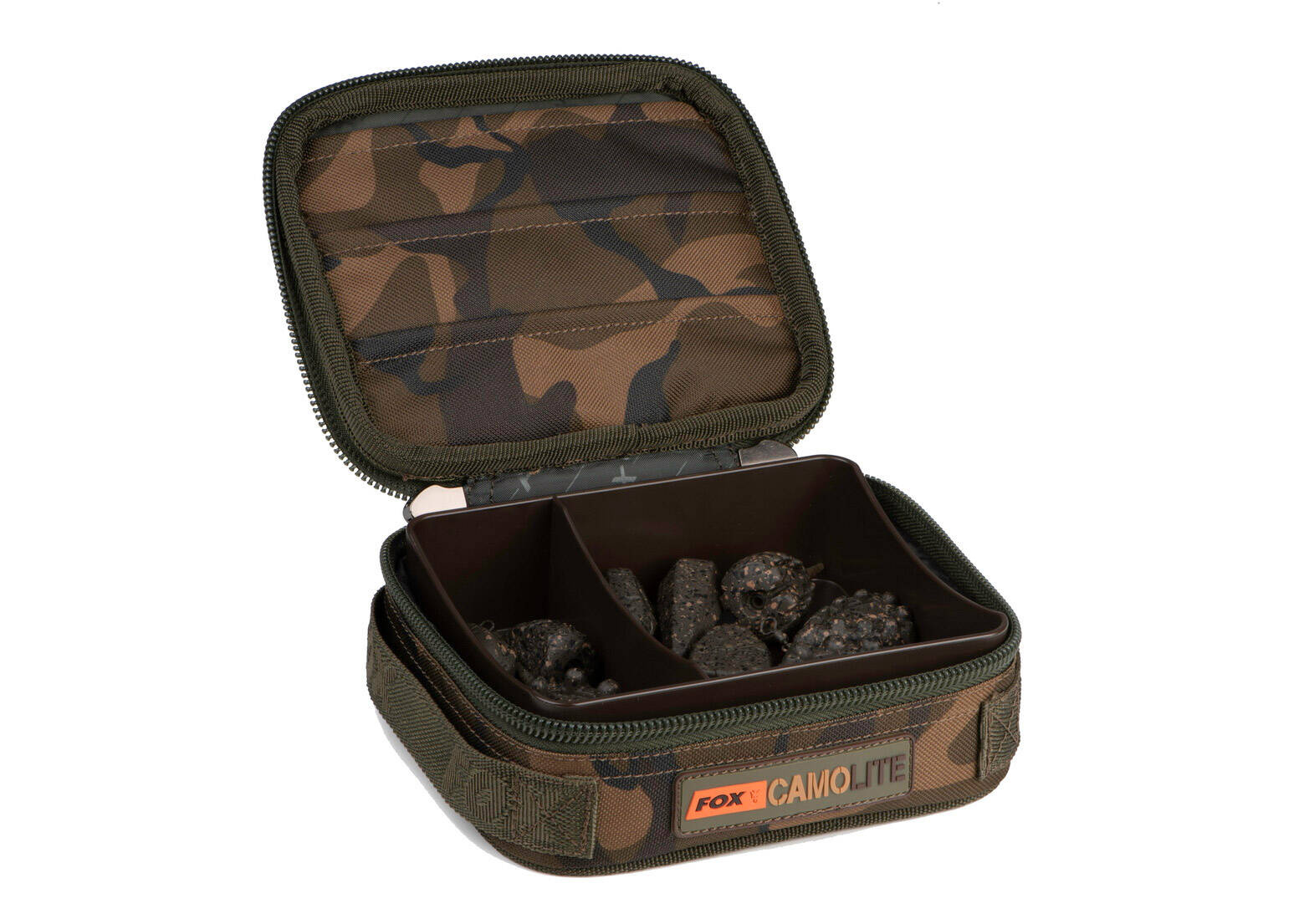 Mała, trwała torba na akcesoria, przeznaczona do przechowywania ciężarków i innych elementów przyponowych.