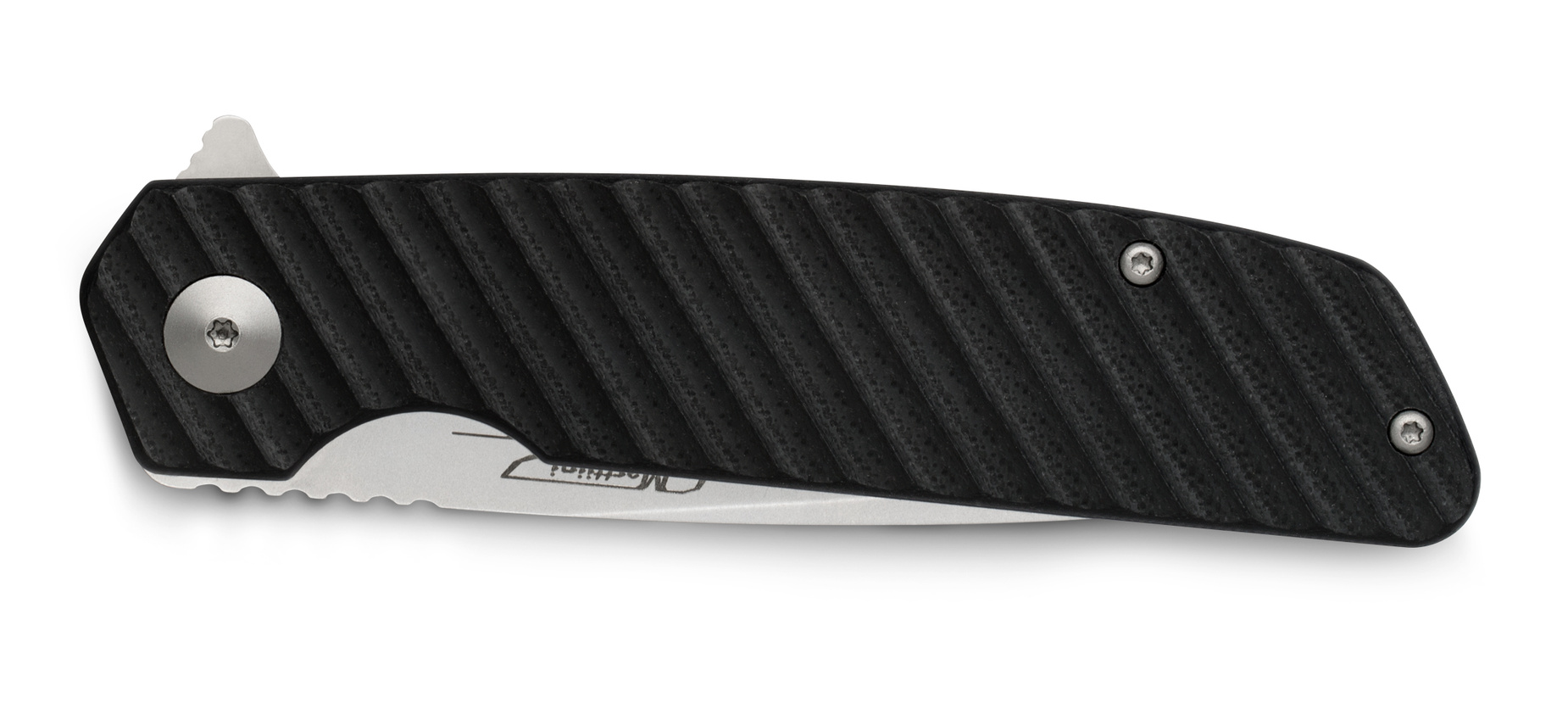 - Mechanizm otwierania typu flipper umożliwiający szybkie rozłożenie ostrza jedną ręką