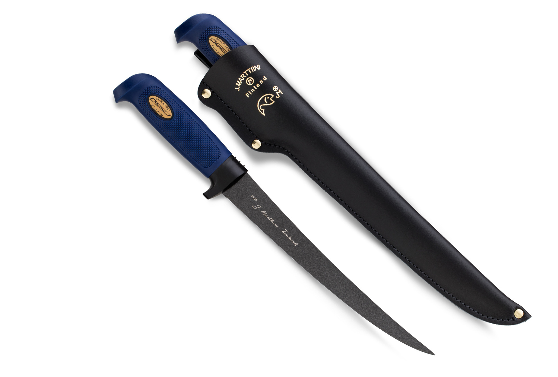 Zastosowana powłoka Martef nadaje ostrzu wyjątkową śliskość — cięcie jest niemal pozbawione tarcia, a mięso ryby gładko odchodzi od powierzchni ostrza.