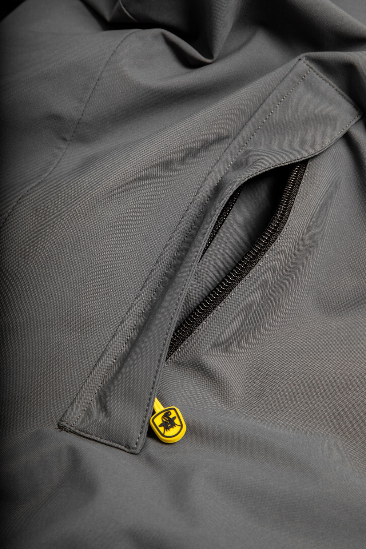 - Kieszenie podszyte polarem, w pełni zapinane, wyposażone w ochronne plisy zapobiegające przedostawaniu się wody – idealne na akcesoria, telefon czy ogrzanie dłoni.