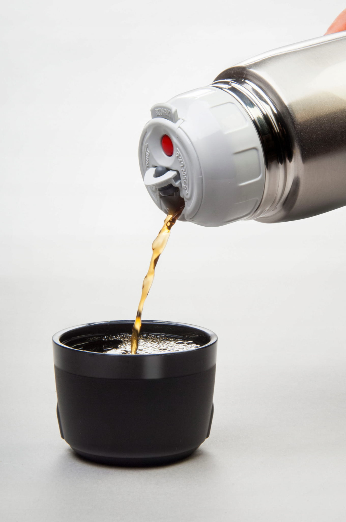 - Posiada bardzo higieniczny i przyjemny sposób otwierania korka - przycisk służący do otwierania nie ma kontaktu z napojem, który nalewamy do kubka