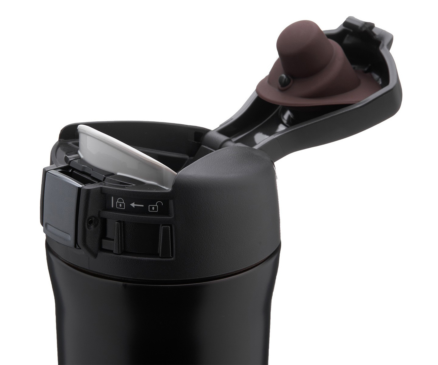 Dodatkowym atutem jest innowacyjny system blokady przycisku oraz 2-stopniowe otwieranie pokrywki, które chronią przed przypadkowym otwarciem kubka w torbie wędkarskiej czy podczas przemieszczania się między stanowiskami.
