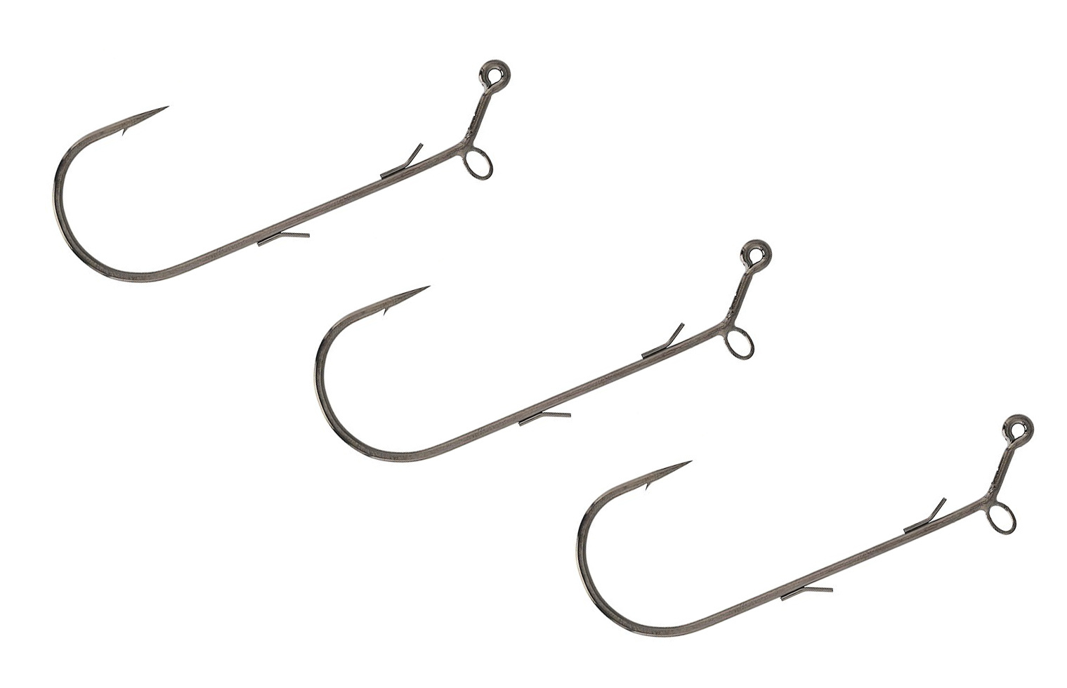 Dodatkowe zadziory na trzonku haka utrzymują korpus miękkich przynęt w pozycji prostej i mocno przytwierdzonych do haczyka bez względu na ilość oddanych rzutów.