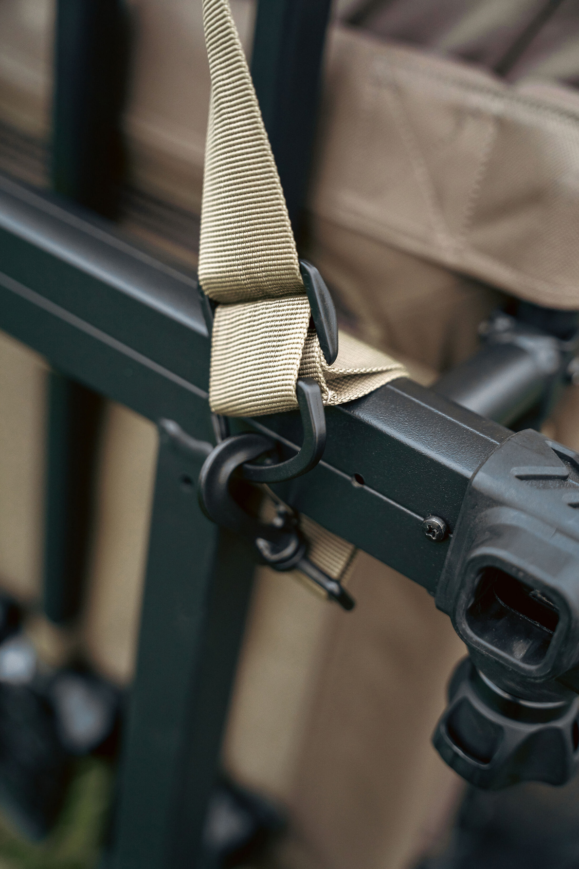 Standardowo fotel wyposażony jest w sprężynowe teleskopowe nogi S23, zapewniające stabilne ustawienie na każdym łowisku.
