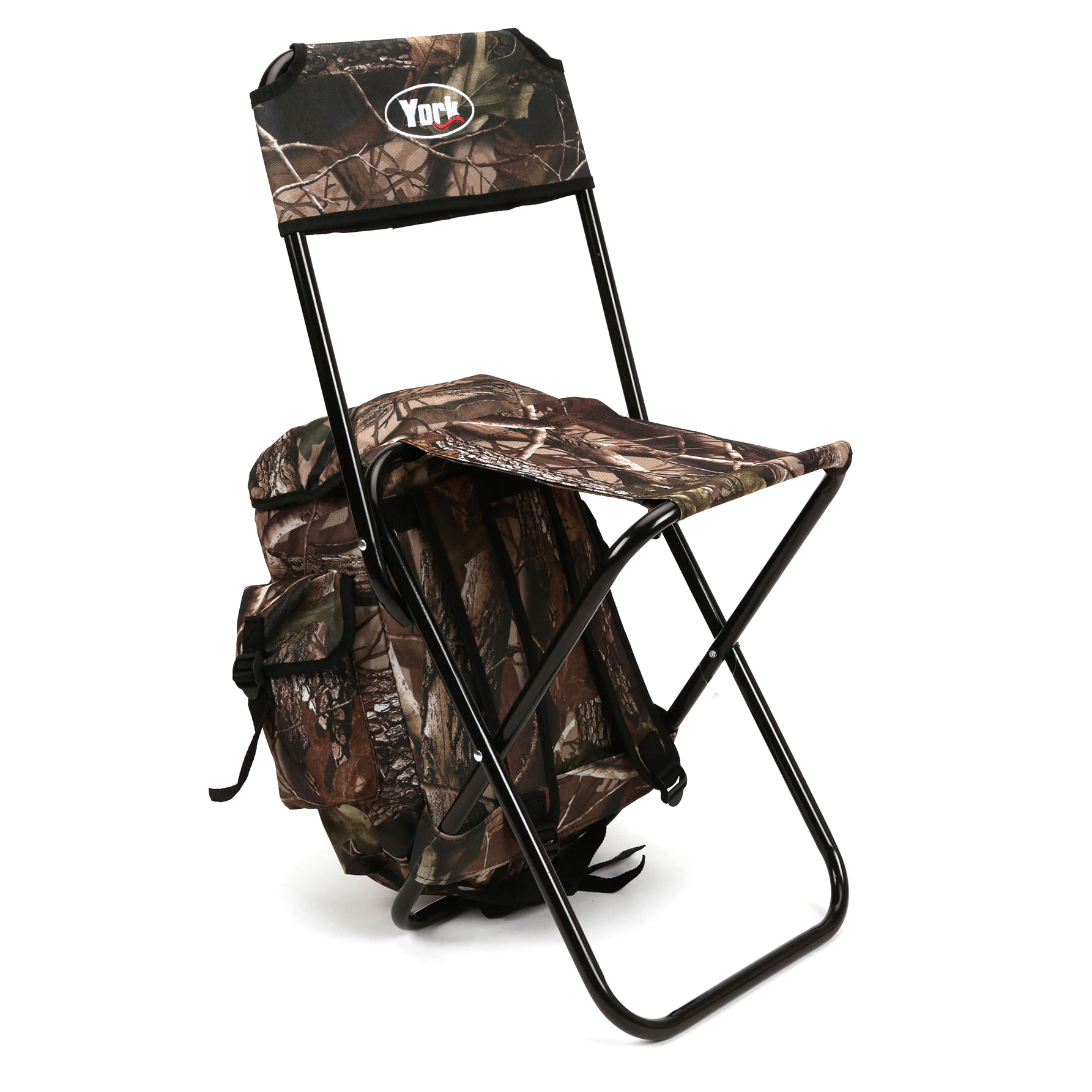 Połączenie plecaka wędkarskiego z rozkładanym krzesełkiem.