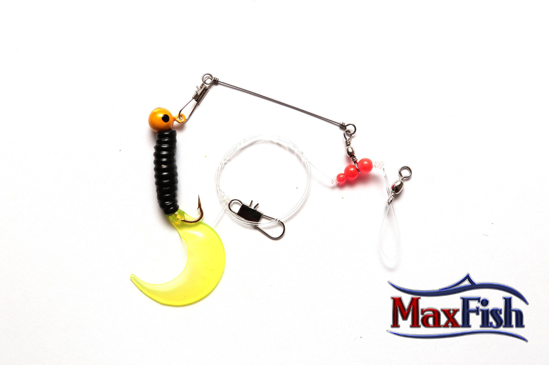 Mocna żyłka wraz krętlikiem oraz agrafką odporną na słoną wodę.